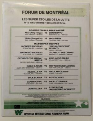 MATCH CARD – WWF EVENT PROGRAM – MONTREAL – HAKU VS BRAVO