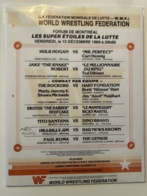 MATCH CARD – WWF EVENT PROGRAM – MONTREAL – HOGAN VS MR.PERFECT
