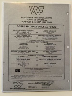 MATCH CARD – WWF EVENT PROGRAM – MONTREAL – JAKE ROBERTS VS ANDRE THE GIANT