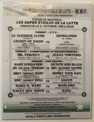MATCH CARD – WWF EVENT PROGRAM – MONTREAL – WARRIOR/LOD VS DEMOLITION